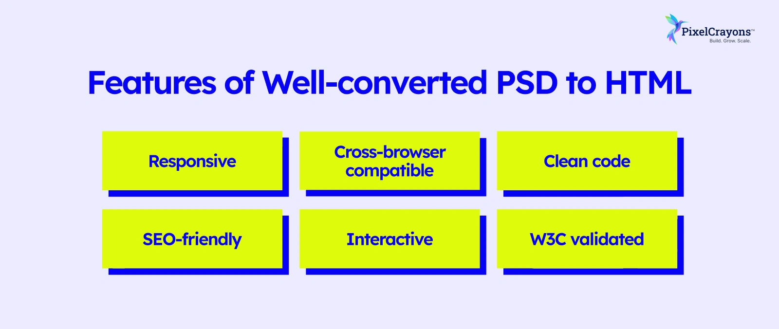 Large agencies require PSD to HTML services that can handle complex designs and large volumes. PixelCrayons delivers scalable, robust, and cross-browser-compatible solutions. Converting PSD to HTML efficiently means faster project delivery, allowing agencies to manage multiple clients without compromising quality.